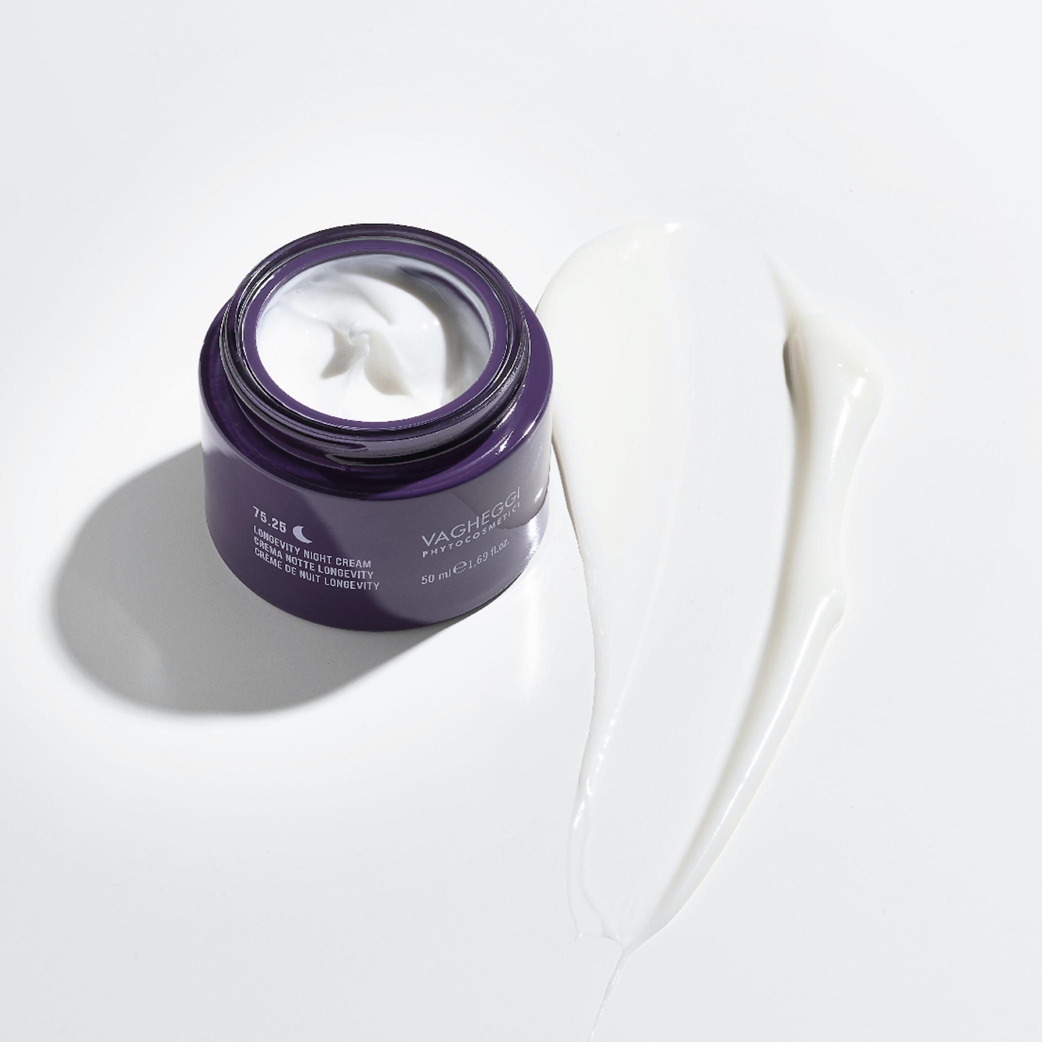 75.25 Longevity Night Cream: nutre profondamente la pelle durante il riposo notturno. Ora dopo ora combatte i segni del tempo, migliorando la densità e l’omogeneità della cute. Contiene estratto di Lapacho, potente attivatore di giovinezza, e Lavandula Hybrida. Il suo effetto "melatonin-like" risincronizza il ritmo circadiano cutaneo, potenziando le difese immunitarie per un viso riposato e visibilmente più giovane ogni mattina. Dona una cute distesa e rivitalizzata.