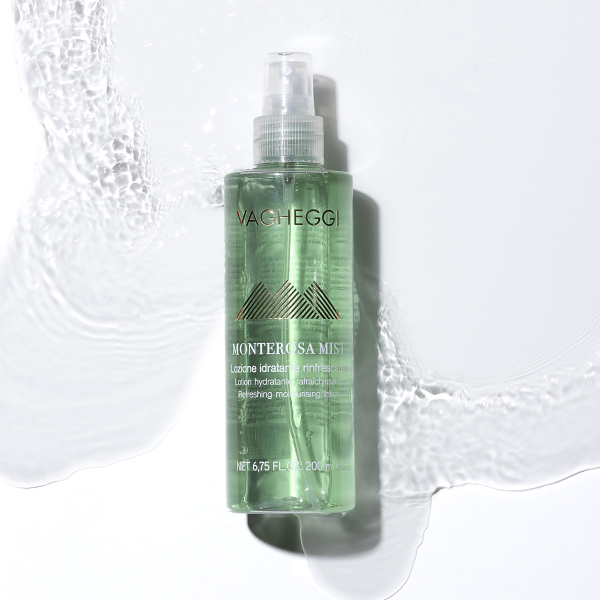 Monterosa Mist Lozione Idratante Rinfrescante: una lozione idratante e rinfrescante perfetta da portare in vacanza per mantenere l’epidermide idratata sotto il sole e dopo l’esposizione. Ideale sia per il viso che per il corpo, dona alla pelle luminosità e un colorito omogeneo. Agisce da booster per altri prodotti cosmetici. Dà un effetto refresh e finish wet look se nebulizzata sopra al make-up.